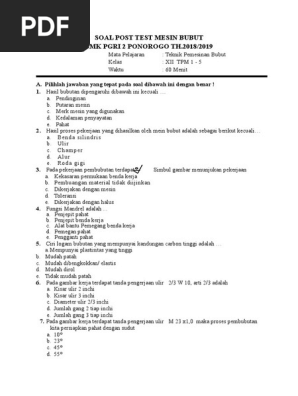 Soal Dan Kunci Jawaban Ulangan Harian Pekerjaan Dasar Teknik Mesin Mesin Umum Mesin Bubut Mesin Frais Mesin Mesin Cnc Mesin Skrap Mesin Bor Teknik Pemesinan from 1.bp.blogspot.com Soal uas mesin bubut kelas 11. Check spelling or type a new query. Maybe you would like to learn more about one of these? We did not find results for: